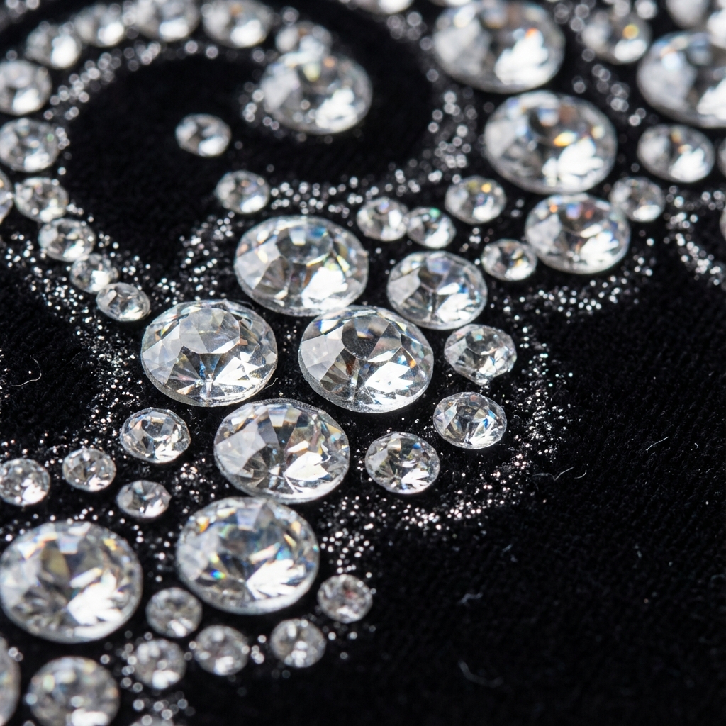 Ajoutez une touche de luxe avec des applications de strass premium. Nous créons des designs éblouissants qui captent la lumière et subliment les vêtements de mode.